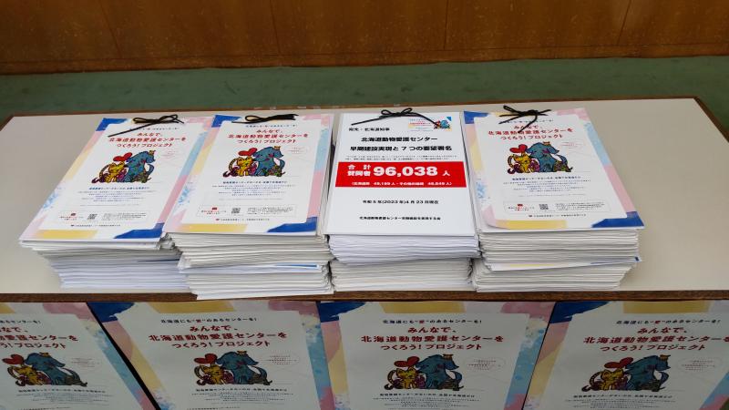 皆様からお預かりした 動物愛護センターの建設についての署名を 北海道動物愛護センター早期建設を実現する会によって北海道へ提出されました。