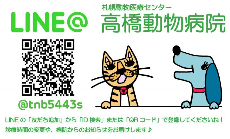 ID検索、QRコード、高橋動物病院 を検索してぜひ「お友達」になってくださいね。