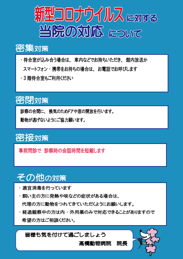 ①待合室の混雑を避けるため、 お車でお越しの方は車内でお待ちいただくようお願いします。